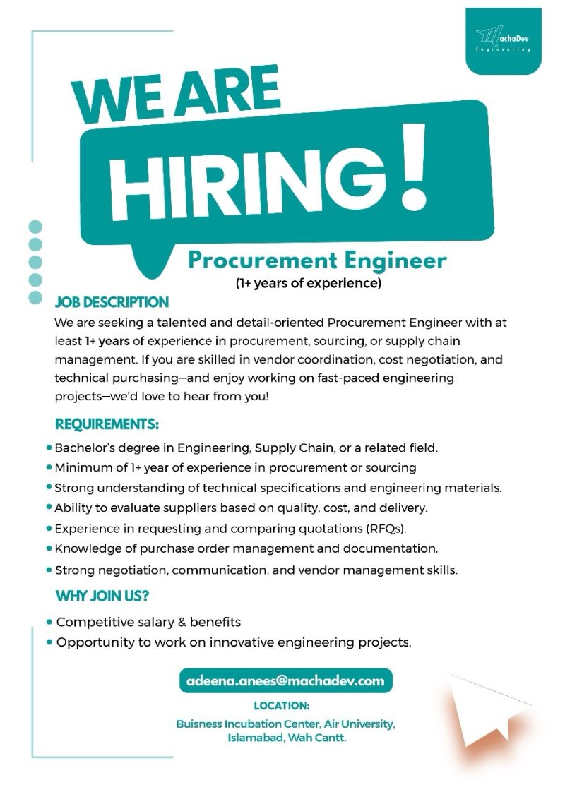Join the innovative team at MachaDev Engineering! We're looking for someone skilled in vendor coordination, cost negotiation, and technical purchasing to work on fast-paced engineering projects, vendors sourcing and component purchase.