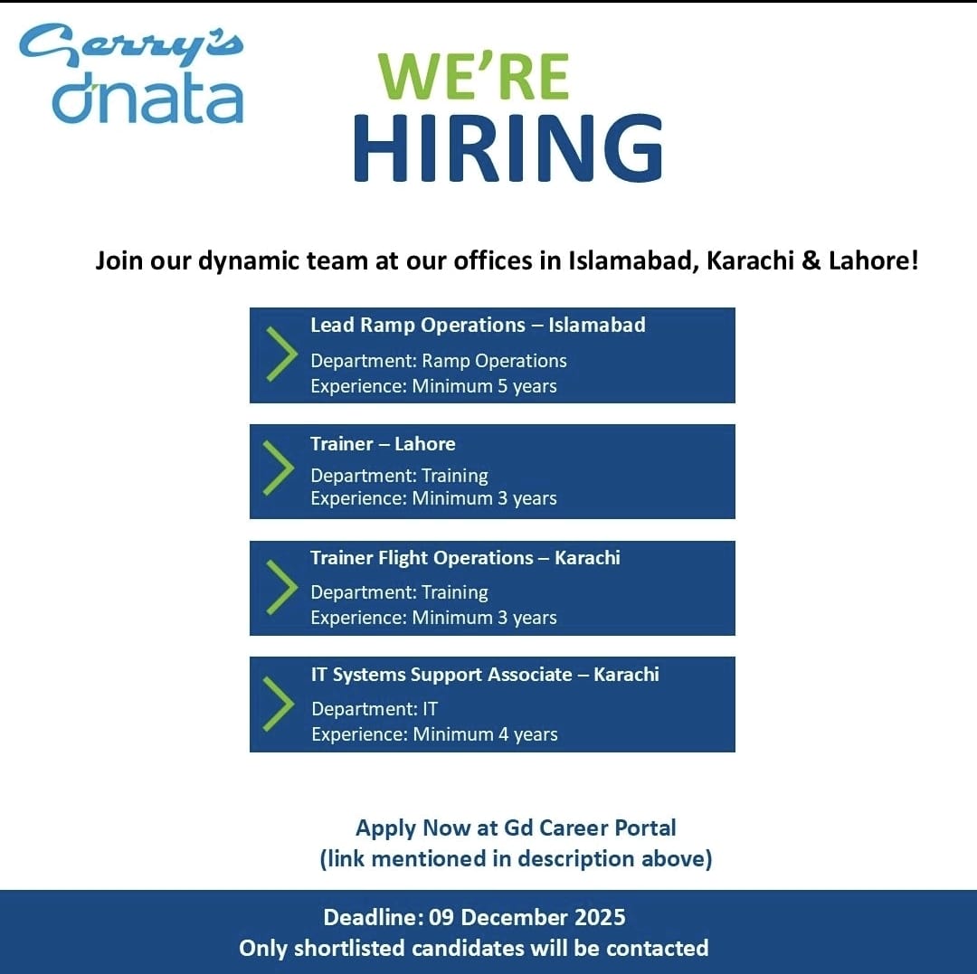 Gerry's Dnata Hiring Lead Ramp Operations(Islamabad) Deadline: 09 December 2025 Apply: https://gerrysdnata-careerportal-631.mydecibel.com/
