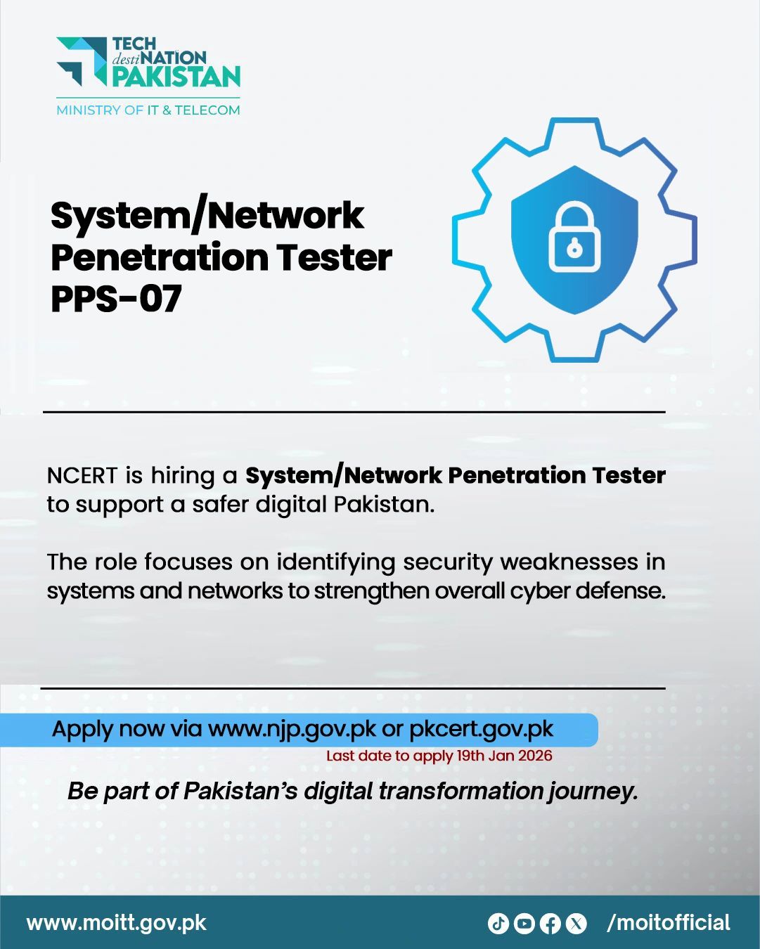 National CERT – Pakistan is hiring! Details in the advertisement Poster Last date to apply: 19 January, 2026